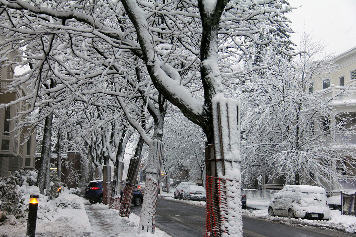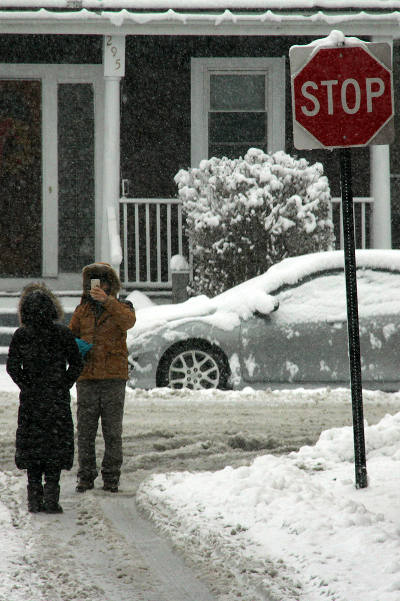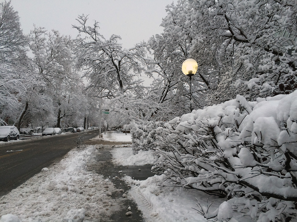 when the phase shift finally arrived - transitioning from rain to snow - it came down with quite a force. i went out in the early afternoon to shovel my own sidewalk. as soon as i was finished, all my hard work was covered up by a fresh layer of snow. it wasn't just the sidewalk, as my entire jacket was encased in snow as well. the trick seemed to be to shovel multiple times in order to keep the walk clean. the only way to do that was to go out every few hours.