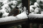 i also watched a flock of robins taking shelter in my backyard. there have been winters where robins were everywhere, but not this winter. i hardly ever see a robin these days. but apparently they're still around. they look sort of pretty, all puffed up to stay, with their red breast, white eye rings, and yellow bills.