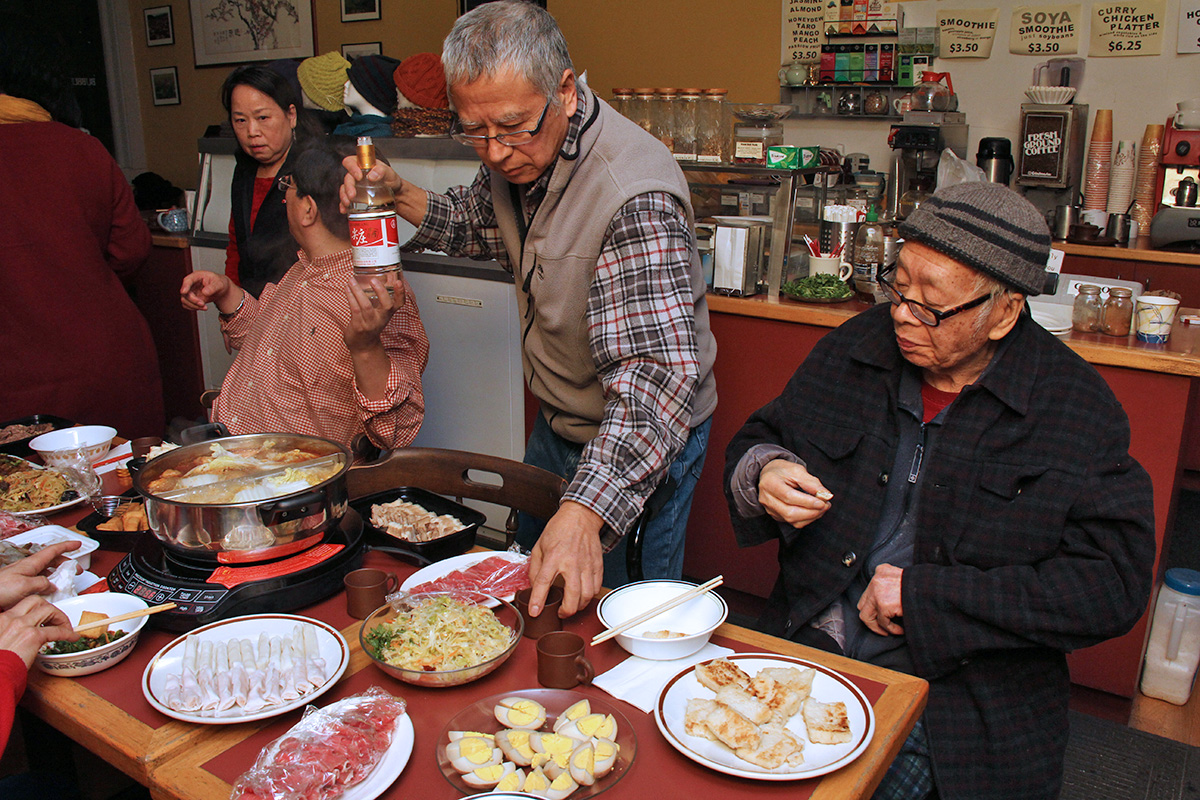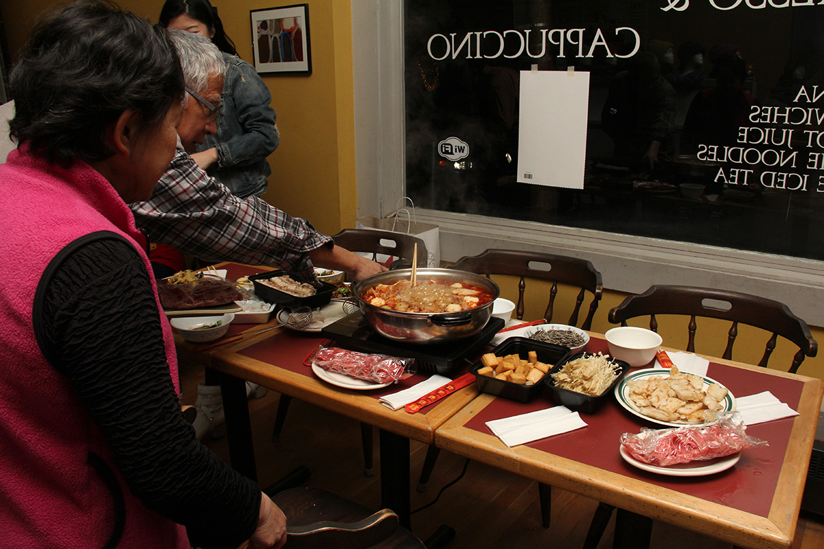 the reason why we were having hot pot at the cafe was to accomodate my grand uncle, to have it at a venue closer to his house. we split into 2 tables, one all spicy, one half spicy half normal. i set up the SJ4000 to capture a time lapse of dinner. my sister was here in the early goings but predictably left once we began eating. my 2nd uncle opted out as well, didn't even make an appearance. my grand uncle came by for half an hour before my father took him back to the house.