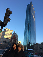 coming back out of the station was when i got a call from my shanghai visitors. they said they were already here at harvard, but i could see them. after a bit of landmark triangulation, i realized they were waiting in front of the harvard main gate, so i quickly headed over there. when i arrived however, there was nobody outside. when i called to ask them where they were, i realized they were sitting in an SUV parked on the curb. i momentarily blinked in confusion, but they asked me to hop inside the vehicle. a man was driving, their local contact. we circled around the harvard courtyard, until we were at the other side of campus by the art museum. that's when the driver let us out so we could explore, the mother and the daughter. though they had warm jackets, they didn't seem to be dressed for the occasion. i took them to get their photo taken with the john harvard statue, but the mother was complaining the whole time, and a few minutes later decided it was just too damn cold and went back to the car, leaving the daughter with me. the whole time my brain was like a recalculating gps, trying to figure out a new course of action, since these shanghai guests were obviously not going to be able to handle walking for miles in this weather. i took a photo of the daughter by the harvard statue, then another one with memorial hall in the background, before returning to the car.