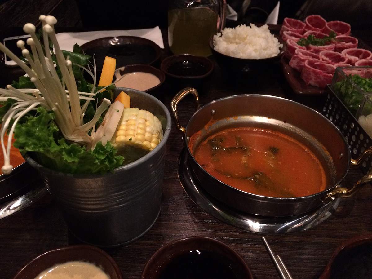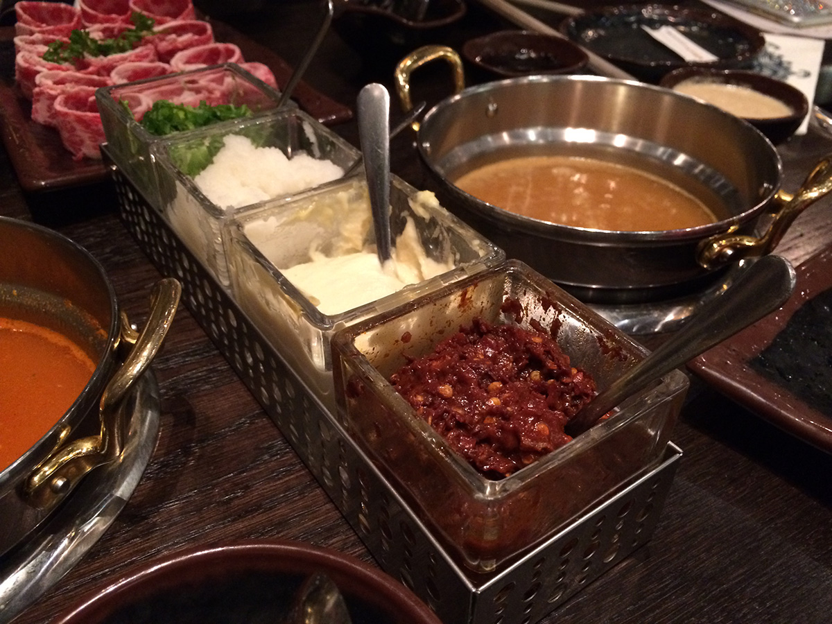 shabumaru wasn't very good. of course it wasn't anything like chongqing hot pot, but it also wasn't like the japanese shabu shabu i'm used to either. the cuts of meat were very good, but the sauces all seemed incongruous: mayonnaise with a funky hot sauce, daikon radish paste, and chopped scallions. the soy sauce was also not the soy sauce i'm normally used to, but rather a sushi soy sauce with a vinegary taste. i made no effort to pay: the amount of money they spent today was more than the cash i currently have in my bank account. my only regret was we didn't go to the barbecue place, where i could've really gotten my money's worth of a free dinner.