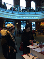 quincy market was surprisingly subdued and relatively empty for a sunday, most likely due to the bitterly cold weather. the daughter wanted to get some postcards so i took them to a good place in faneuil hall. i was explaining to the mother about boston's history - how it was here the colonists first fought with the british and began a war of independence - but i could tell she either wasn't interested or just wasn't listening. i doubt if she knew much of american history at all. when the daughter went to go use the bathroom, i chatted with the mother some more. i told her taxes were lower here in boston, and clothing and shoes were tax-free. that piqued her interest, and i could tell right away where to take them. they could care less about the history or sightseeing; all they wanted to do was go shopping, and i was glad to facilitate them in helping our local economy.