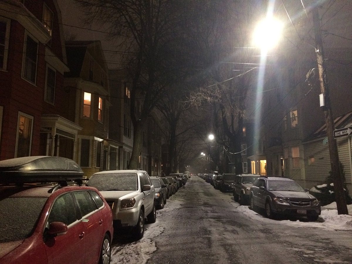 there was a bit of snow by the time i rode back to cambridge, so i was pretty careful with my riding, watching out for slippery spots, going slow around turns. i made it home with any incident.