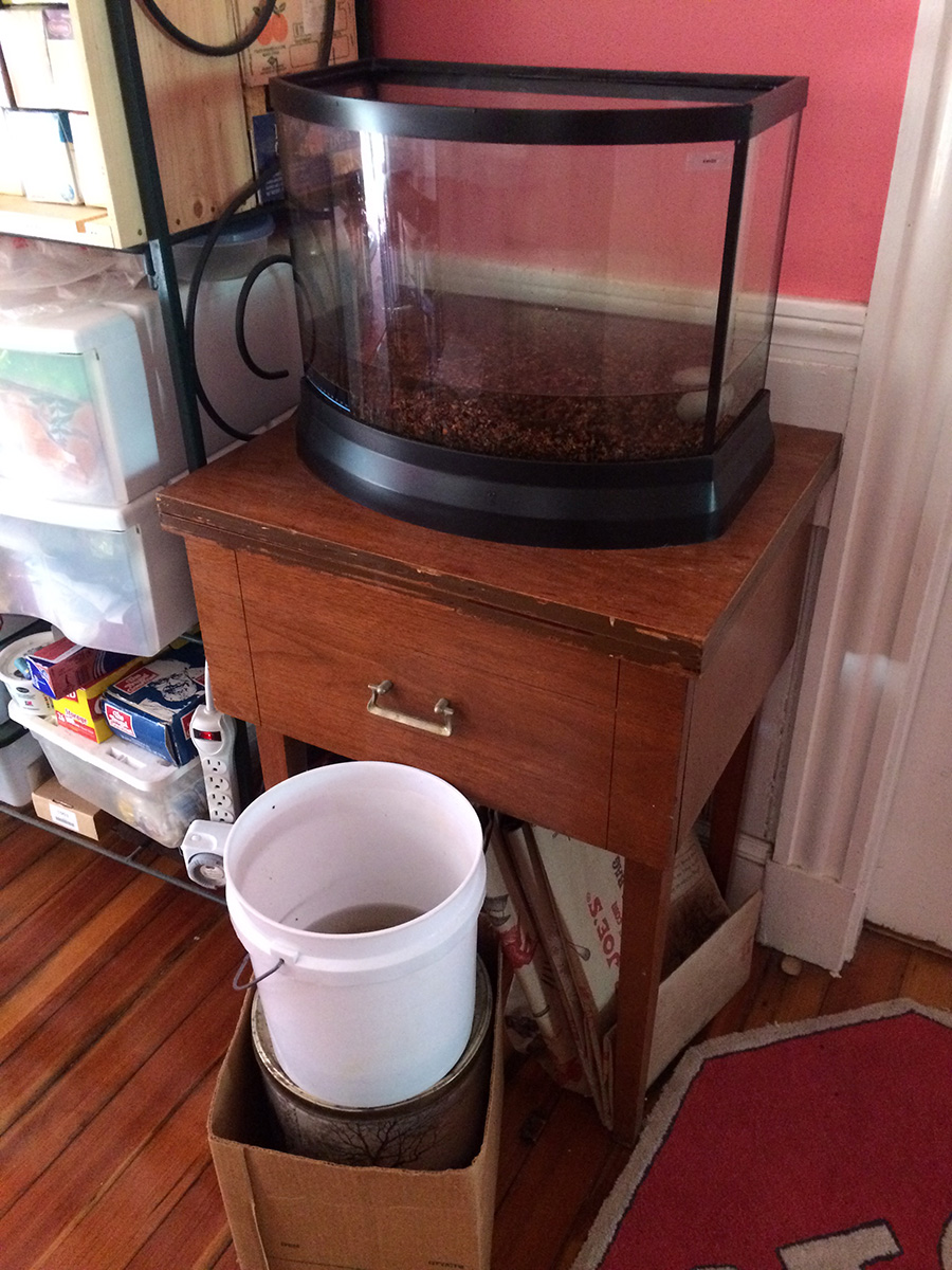 moved the content of my 7 gallon mini bow to a regular 10 gallon aquarium tank in anticipation of the LED tank light arriving next week: