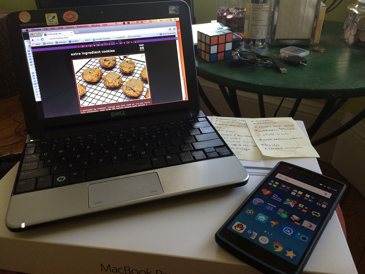 i tinkered with michael's macbook pro for a little bit (still not resolution) before working on an item from my todo list: prepare my dell mini 10v hackintosh. i've decided i'd bring the OS X netbook instead of my macbook pro because it was more portable. sure, it's nowhere as fast, but it's still a usable computer. half of my year in china was spent on this machine. in a perfect world, i'd have the money to simply buy a macbook air, but i don't have the budget for one at the moment. a netbook would be good enough; if i spent most of my time on the computer while in china, then i must be doing something wrong.