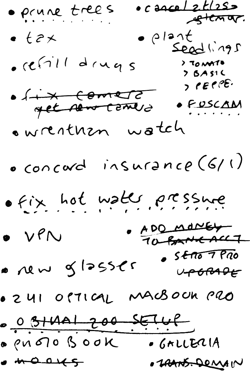 so i managed to clear a few more items off my list, and partially completed a few more. hopefully i can get everything done with plenty of time to spare, so i won't be stressed out about it. i'm only leaving for 2 months, but i don't want to leave something hanging, especially if it's something like a payment or taxes that i need to get done before i leave.