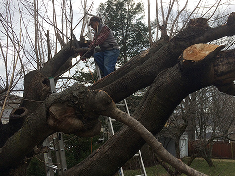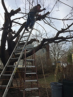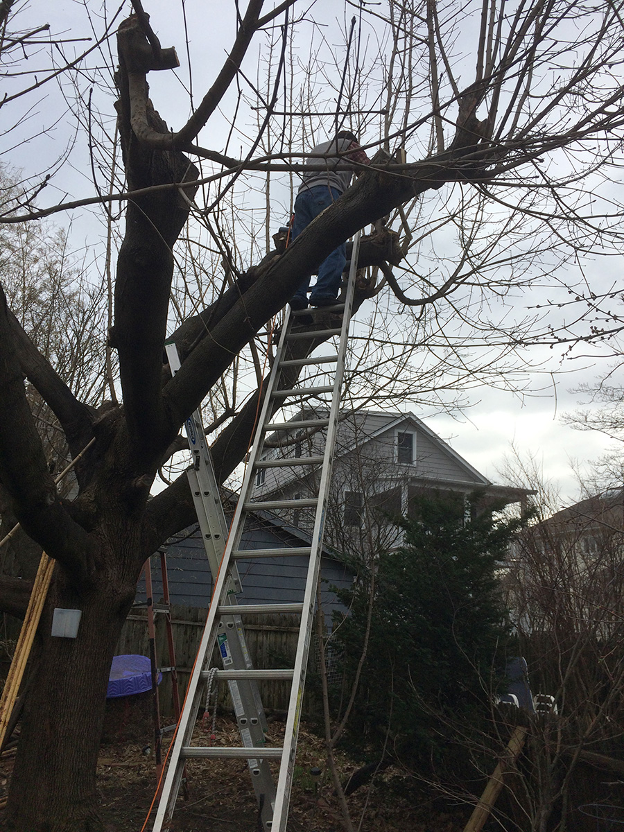 for the next 2 hours my father and i were busy pruning the rest of the maple tree, cutting down all the suckers that'd grown over the past few years, since the last time we gave the tree a thorough pruning. he was up on the ladder cutting down the branches, gently passing them down so as to not damage some neighboring trees and plants and fences. my job was to then take these branches and stack them up neatly in a pile, cutting off any stray branches with an industrial-size lopper. there were also a few tricky spots that were hard for us to set up the ladder. it really is a 2-person job, as we found creative ways to snake the ladder through the branches, occasionally requiring some branch trimming in order to make the ladder fit. we ended up cutting so much, there will hardly be any maple leaves this season. however, that means more sun in the backyard, which will be good for the garden.