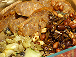 after some rice porridge for lunch in belmont, i was out in the backyard, trying to reduce the branch pile as much as possible before the snowstorm that'd arrive later today. there were first some smaller piles i still had to tie up into bundles. i used some hemp rope but they were too stringy and kept on breaking. i found a coil of thicker hemp rope (for pitching tents?) that was much better but only a limited supply.