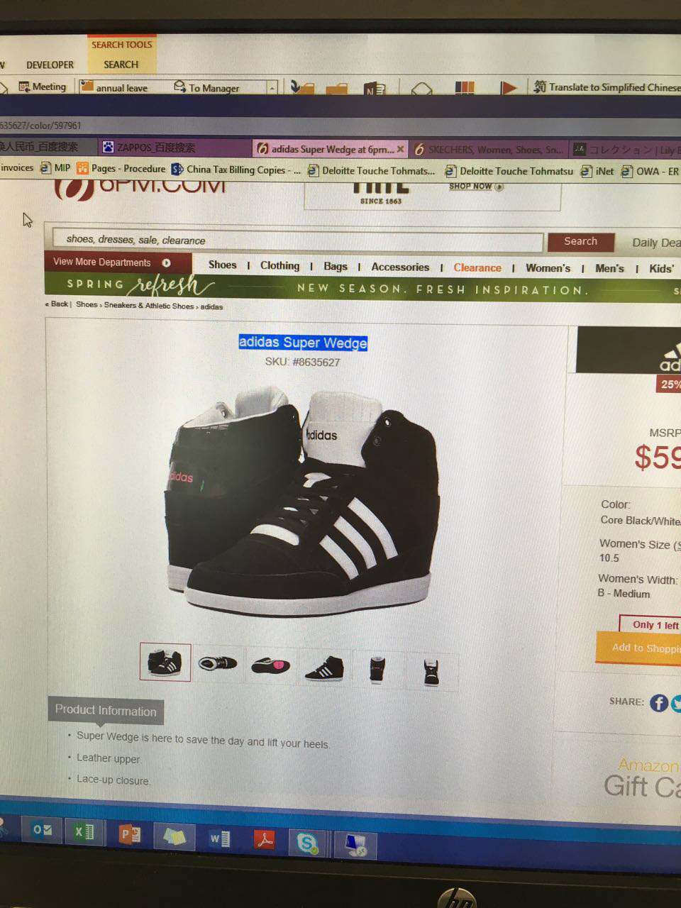 while my mother and sister's godmother were still in the coach store, i went to the adidas outlet nearby and looked for wedge sneakers, another WWY request. i personally think they look silly, but they seem to be pretty popular in china, especially among shorter women, even though i think they're pretty nonfunctional as actual sport sneakers. unfortunately they didn't carry any wedges, just flats.
