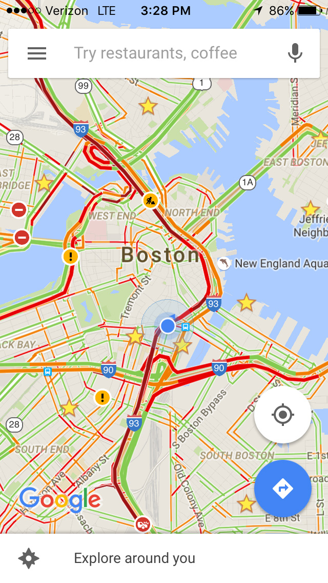 going back was faster, as we avoided 93 altogether, and took mass avenue instead. my father wanted to get onto storrow drive and we hit some traffic again, until we got to the drive itself going outbound, and then it was very quick returning to belmont.