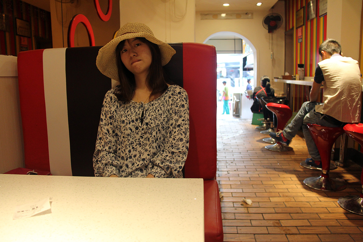 back at the hotel around 2pm they didn't clean our room yet. we stuck around until 2:40pm, when we heard a knocking on the door from housekeeping. we went downstairs to the 4th floor to wait. there was a pool table and we played a game. sunmeng acted like she knew what she was doing, but held the cue stick wrong and often times either completely missed the cue ball or would accidentally hit a numbered ball with the stick. i was a pro compared to her, or at the very least i could handle the stick better. we stayed downstairs for almost an hour before figuring they were probably done cleaning the room.