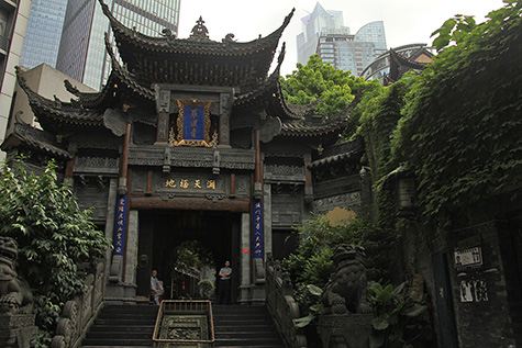 with bundles of yarn strapped to my already heavy camera bag, i made my way to my next destination, which was the luohan temple around the corner. it's actually a famous chongqing tourist attraction, but for some reason i never got around to visiting despite being centrally located in chonqging and near all the places i frequent. maybe i was turned off by the gauntlet of deformed beggars and swindling fortune tellers lining the street leading up to the temple. maybe it was the fact that it didn't look all that impressive from the outside, seemingly swallowed up by more and more tall buildings being built all around it. but i knew it was worth a visit, if nothing else, just to cross it off my list of chongqing attractions.