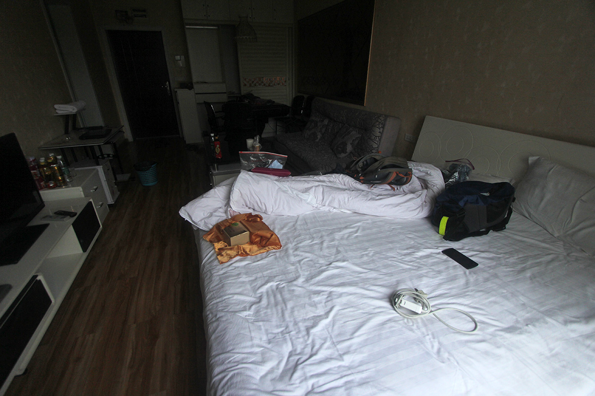 i went out briefly to get some snacks: dongbei bread, custards, and 20RMB worth of large yangmei (17RMB/æ–¤). as it was intermittently raining outside and cold as well, i stayed in the hotel the rest of the day. at some point housecleaning came into the room despite me telling them i'd be gone to change the sheets on the bed. i knew they were here because i saw one of the plush toys on the desk (it must've fallen off the window). also when i left i had all my clothes embarrassingly hang-drying in the room. everything was dried of course, and no mildewy smell, which was one of my fears when it came to drying in the room.