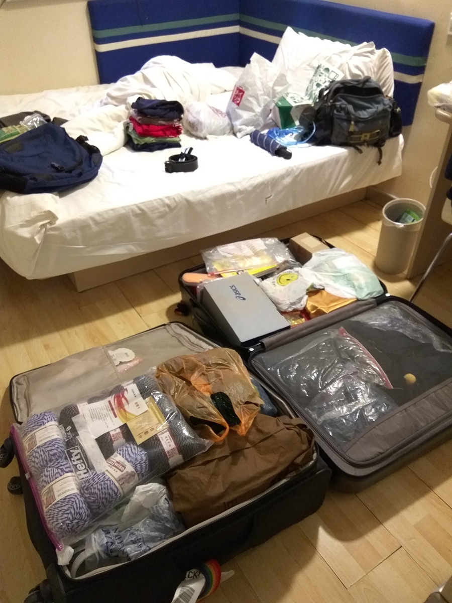 i took it easy on my last full day in chongqing. i chatted with my parents in the morning before readjusting my luggage. i packed everything, including the load of laundry i did yesterday and my spare pair of shoes. both suitcases were over the 51 lbs limit by a few pounds, but i was hoping the airline would be lenient with their weight requirements. worst case scenario, i had a shopping bag ready to carry any excess over-weight items.
