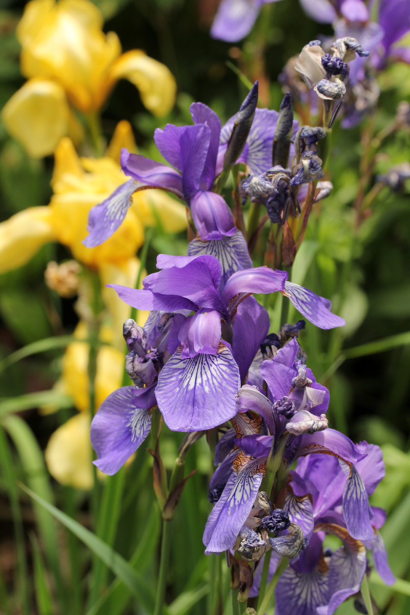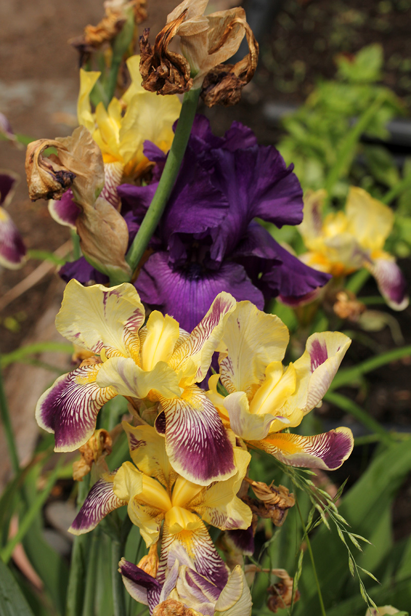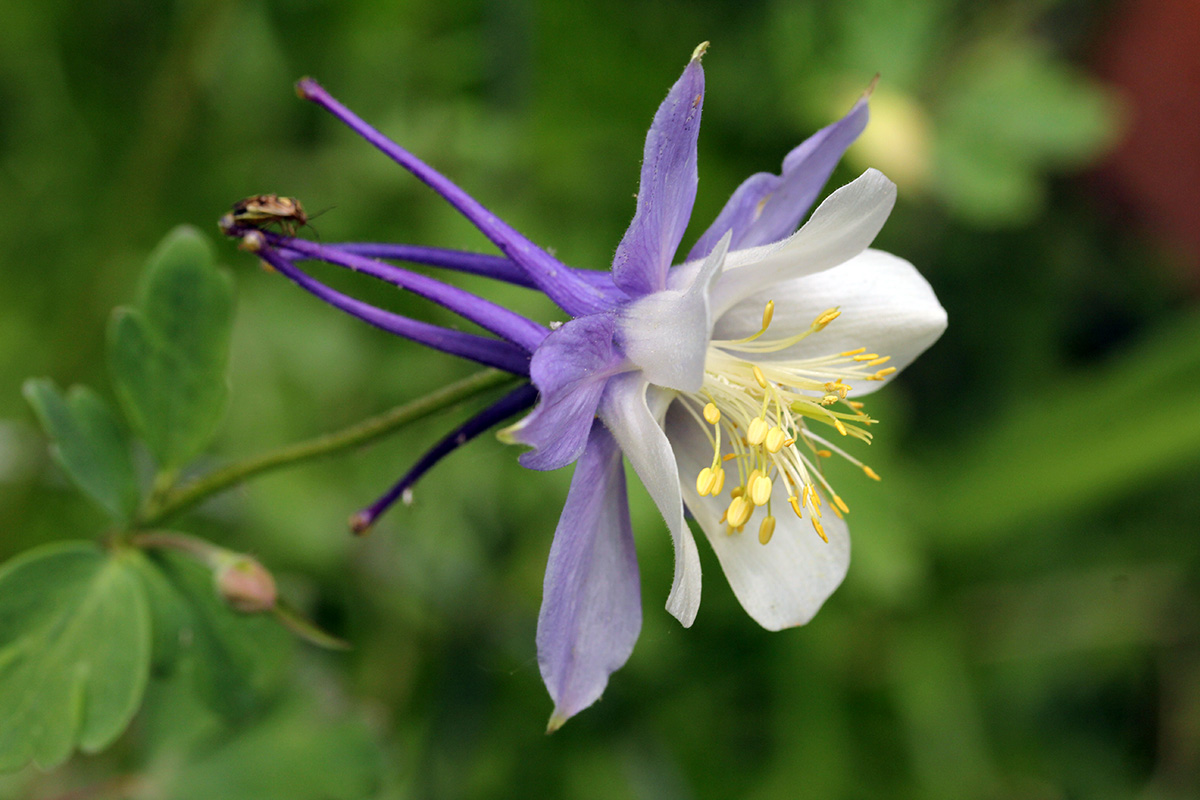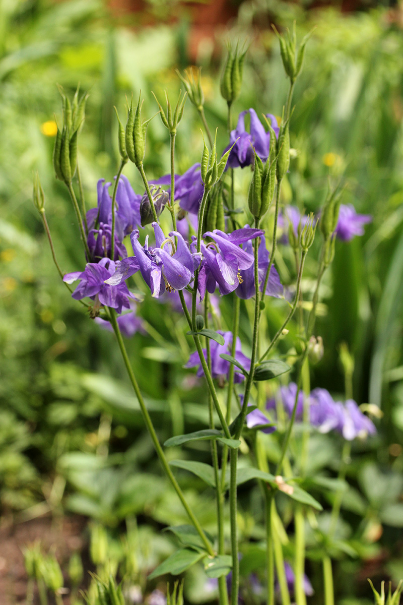 when i finally saw my plot i was surprised by how neat it looked without me having worked on it all spring. maybe that's why i didn't get any special mail about having an unruly plot. maybe tilling the soil the day before i left for china has something to do with it. also the plot is pretty well maintained to begin with, so there wasn't much weeds to begin with, just some stray grass and a bit of creepy ground ivy. half of the plot was carpeted in wild parsley, but it served as a good ground cover, and seemed like i did it on purpose. there was 2 blooming columbine plants, and a transplanted hollyhock that's grown about 3 feet tall. there was also what i really wanted to see, which was the field of self-sown delphiniums. delphiniums are entirely missing from my parents' backyard this year (even though they sprouted out a lot last summer), but here in my garden plot, i seemed to have a delphinium garden, which will look amazing when they finally bloom in a few weeks.