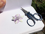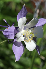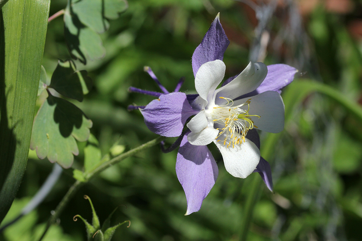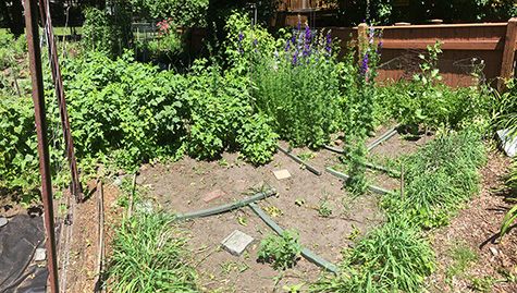 i also have a solitary columbine plant in my plot that has a few showy flowers. they might make good pressed flowers but i couldn't bare to cut any of them because they looked so pretty. there's also a transplanted 2nd season hollyhock that has flowered yet but has some buds. finally, a wild tomato grows in the empty plot.