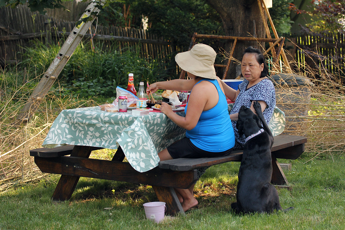 my sister came home in the late afternoon, insistent that we have some sort of barbecue. she did most of the food preparation. i like my barbecue traditional, so i wasn't thrilled with her curry burgers or mint-flavored chicken.