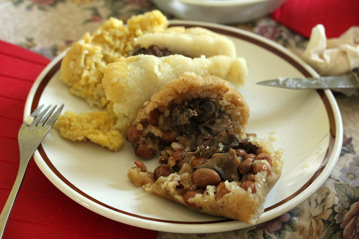 in belmont my mother and i tried the zongzi i bought on a chinatown street corner, one taiwanese style, one cantonese style. each one was wrapped in 4 pieces of thin bamboo leaves. the taiwanese zongzi was tetrahedral in shape and stuffed with boiled peanuts, mushrooms, and some pork. my mother complained that there wasn't enough meat, given how cheap the price of pork is. the cantonese zongzi was rectangular, stuffed with just pork and yellow bean paste. it wasn't as flavorful as the taiwanese zongzi.