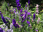 i went to visit the community garden first to plant the eggplants. i think my plot has the biggest color display with a field of larkspur in various shades of purple and pink. my maroon hollyhock has also bloomed. i don't see any other gardeners with either larkspurs/delphiniums or hollyhocks. probably the reason why nobody from the garden committee has hassled me for neglecting my plot is simply because it looks like i've put in a lot of work, even though everything that's currently growing were all self-sown. the mulberries have also started falling, but it's still early so i don't have a mulberry carpet yet.