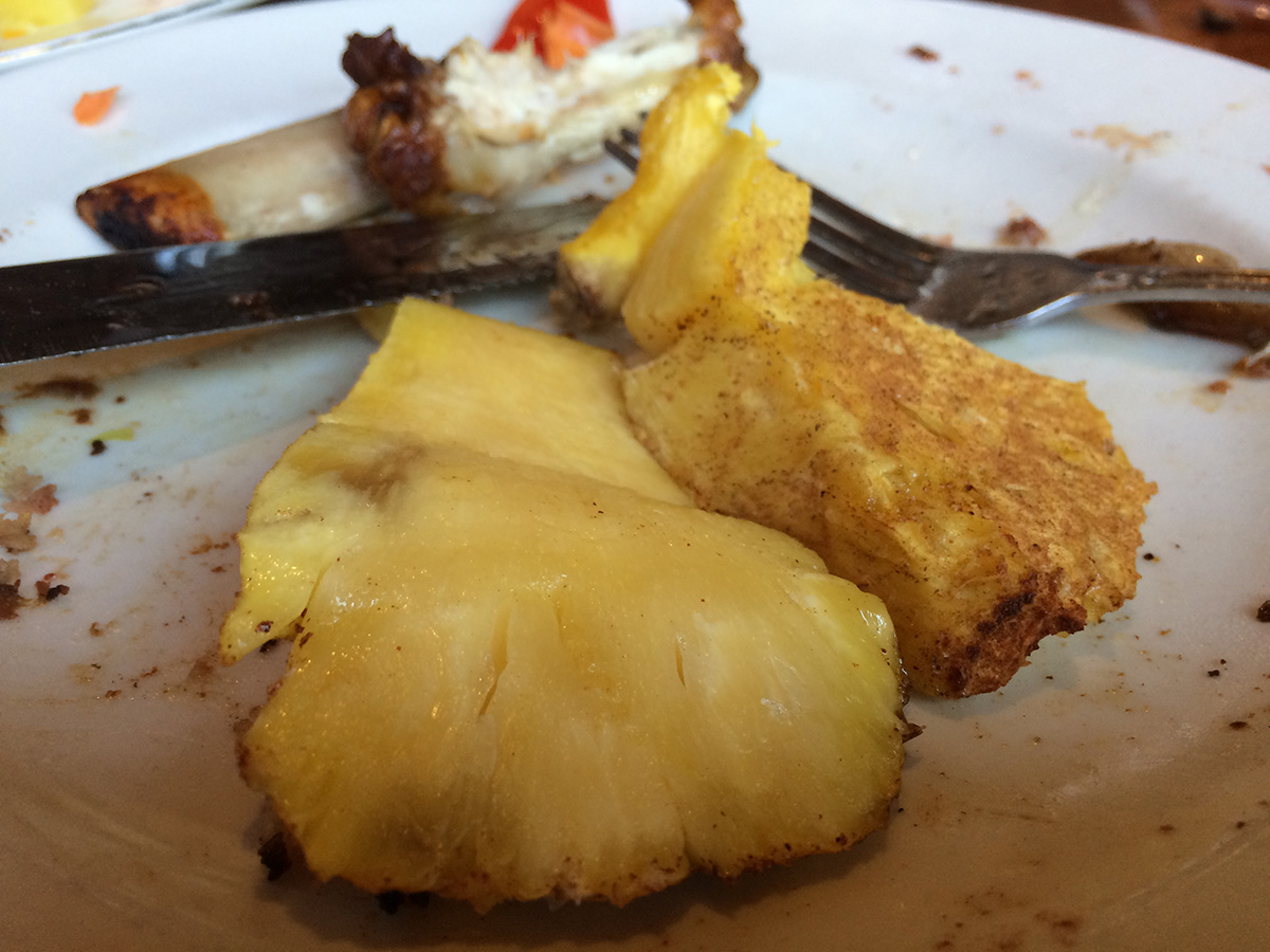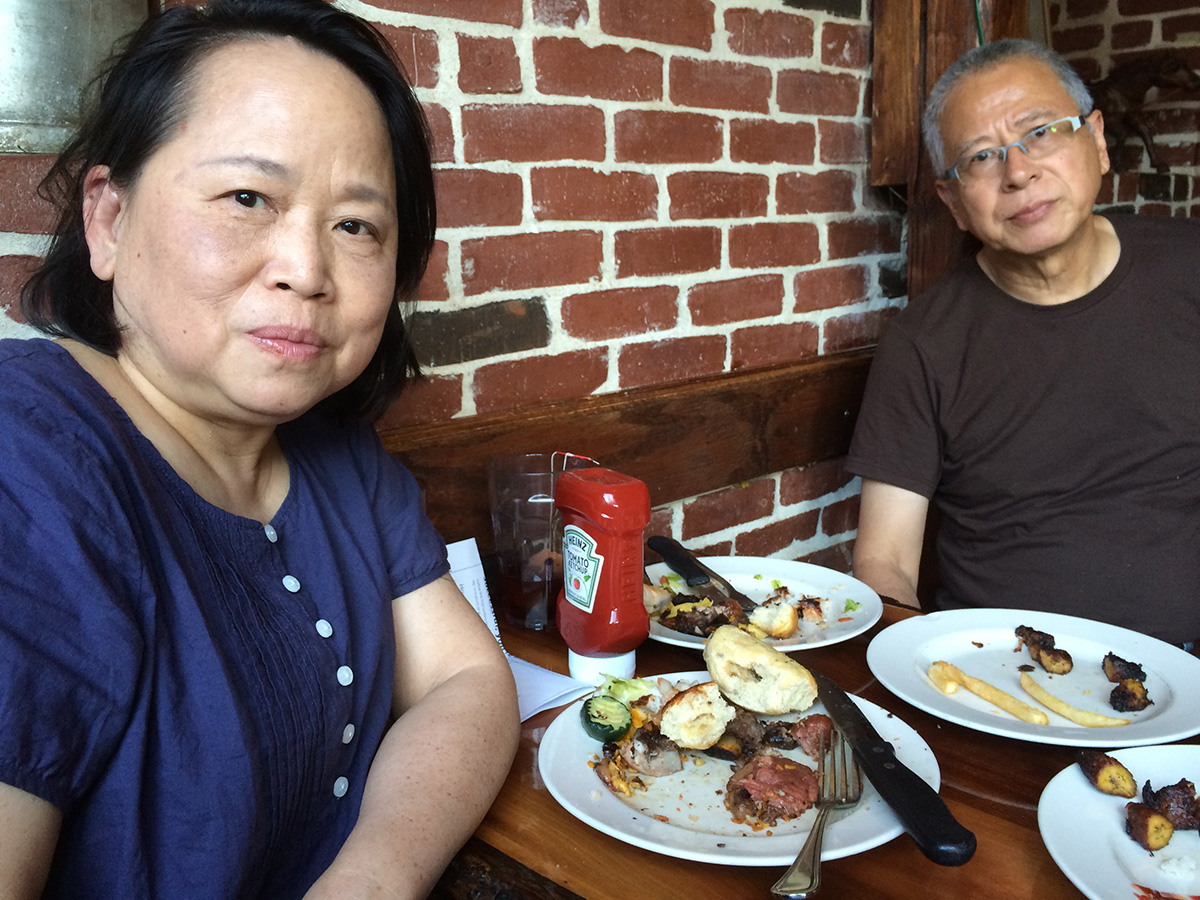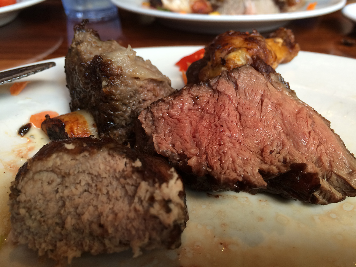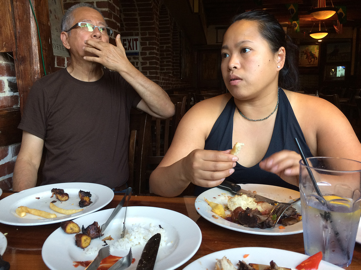 the barbecue was okay, but perhaps a step down from the last time, and that was step down from the time my parents went with my aunt and uncle. the problem with going on a weekday evening is slow business, which means they don't bring out their very best cuts of meat. instead of a barbecue chef bringing out the skewers, our waiter michael performed double duty. a really nice kid, just arrived from brazil more than a month ago, you would never be able to tell because he didn't have any accent.