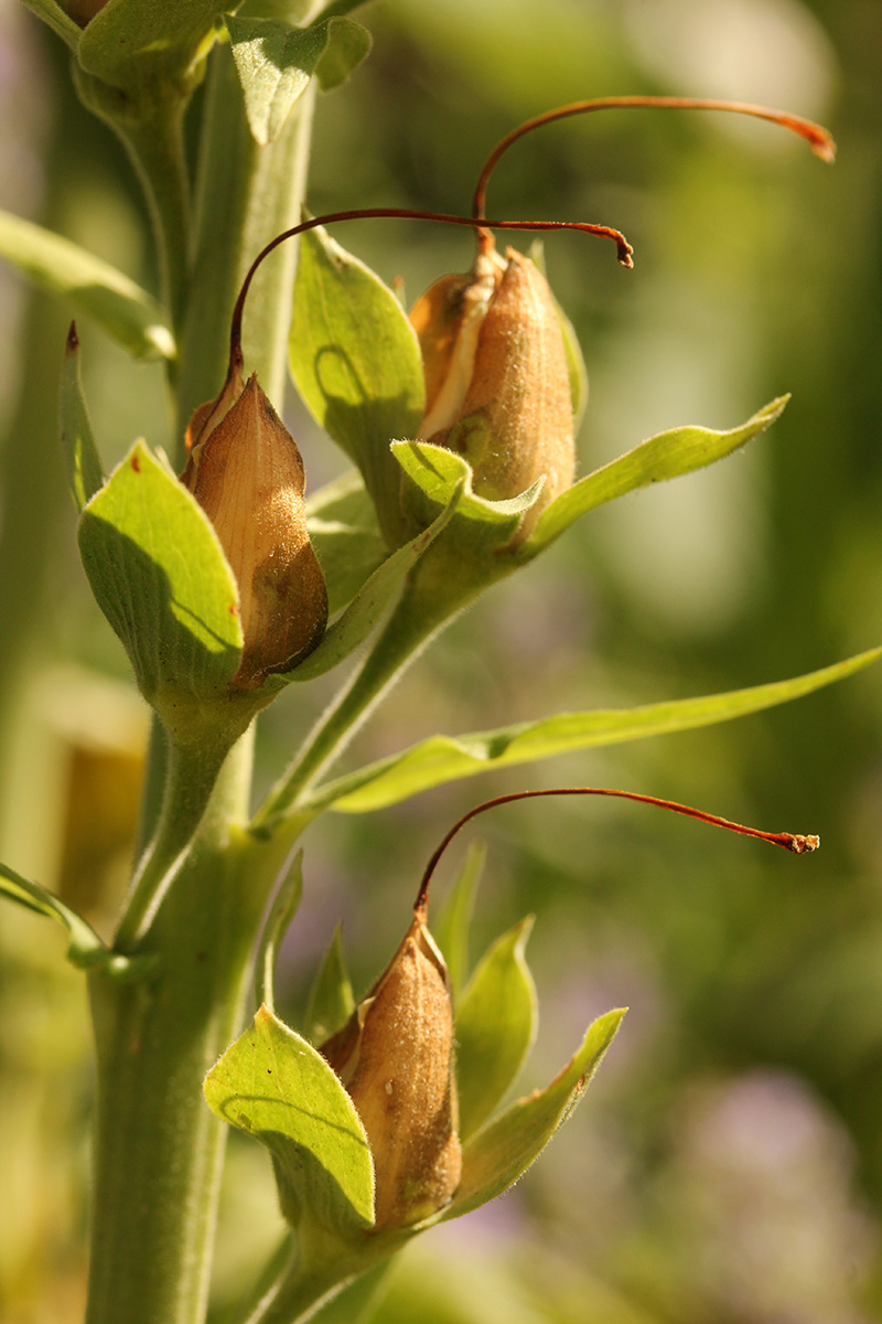some of the foxgloves seed pods have already opened. foxgloves have one of the tiniest seeds, it's weird to imagine such tall showy plants can grow from these miniscule specks of dust. i remember when i tried growing them, i didn't know what to do the seeds. i ended up sprinkling them over a pan of dirt and forgot about it. i was surprised when they all sprouted, but didn't know how to divide up so many tiny seedlings. i ended up cutting them up into blocks (like pieces of cake) and planting them around my parents' backyard.