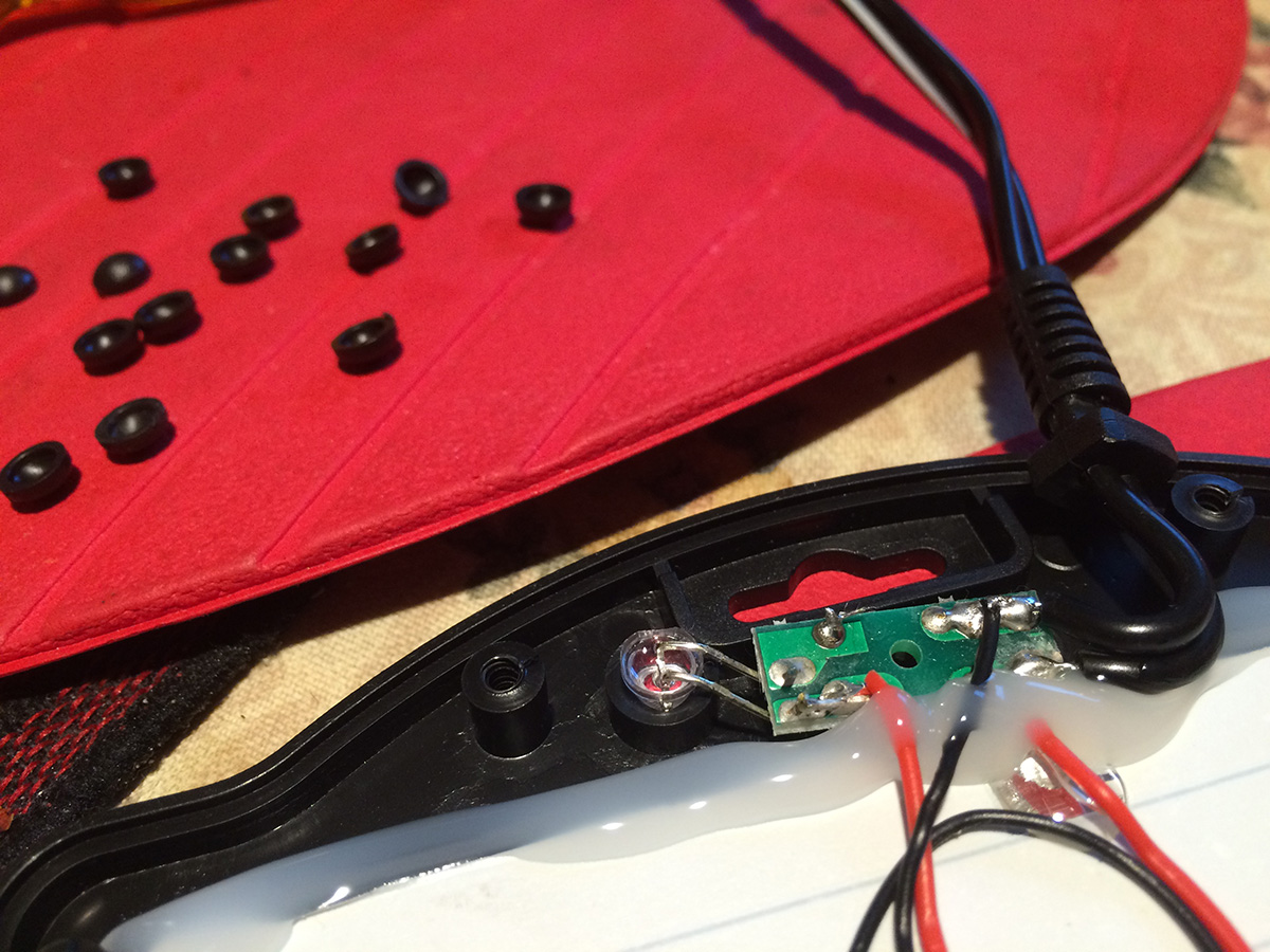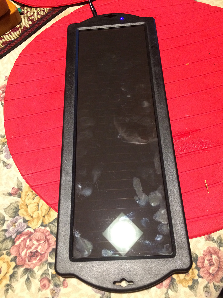 the next step is seeing if we can get the solar panel to charge the battery. at 1.5 watts with about a 200mA, it's essentially a trickle charger so we will forgo using a controller. besides, the amount of power it produces would all be lost if it had to go through a controller first. my father opened the solar panel and cut the led lead to prevent the blinking light from interrupting the power output.
