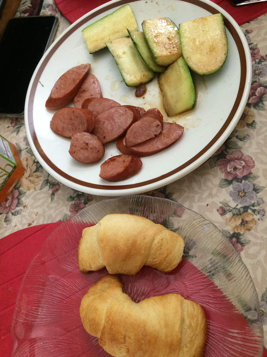 after a shower, i walked to star market to get a few things for my mother (cherries, corn, crescent roll), before taking the motorcycle to belmont a bit after noontime. my mother was watching the sniffer (russian: nyukhach) on amazon prime, a 2013 ukrainian police procedural about a detective with the superhuman ability to literally sniff out clues. she made some croissant and kielbasa for lunch.