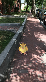 after finishing my potato salad for lunch, i rode the trek in the early afternoon to the UPS store to drop off my amazon returns before heading to market basket to pick up some groceries. i caught my first spearow in the parking lot. on my way back home i took out my phone to see if i could find any pokestops along the way. biking is the best way to make a lot of grounds in a short time. it's not as easy to pick up pokemons when you're biking - unless they happen to appear right around a pokestop. i noticed it yesterday but i'm beginning to see it more and more, just of people playing pokemon go. the demographics tend to skew young, and at least in camberville young adults. people who are older play in cars, i see plenty of people pulling over to the curb playing with their phones in a way that makes me suspect it's pokemon go. at the beacon street community garden - which happened to be a pokestop - i encountered a scyther. it took a few balls to capture it, but as soon as i did, the server went down and my capture never registered, just a frozen ball.