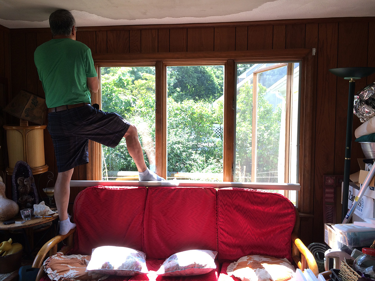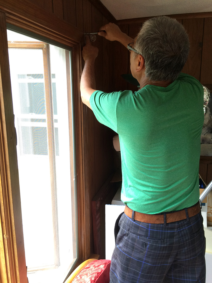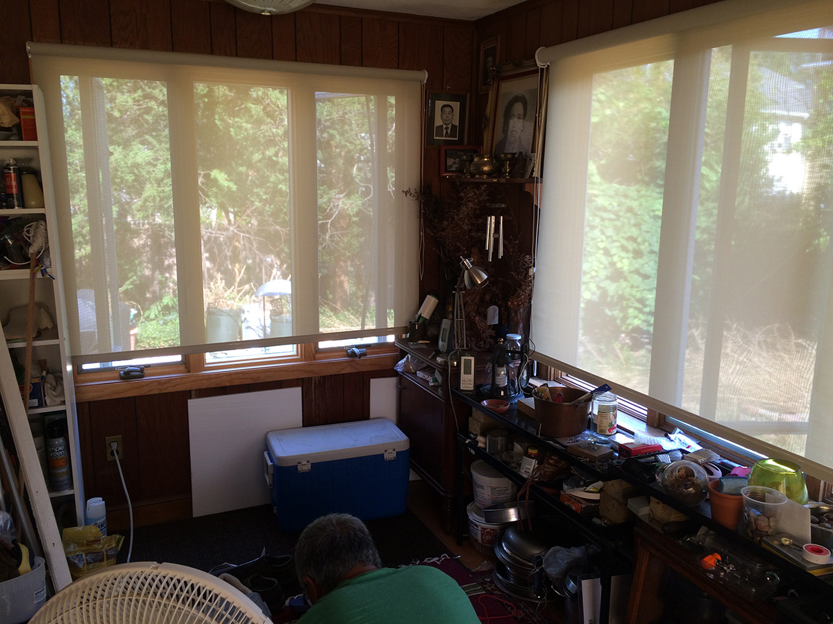 around 2:30pm my father came home to install the new shades. we started with the western face of the sunroom, because it had the most sun, but also because it was the easiest to access. we measured exact and the shades arrived exactly to our measurements, with no margin of error. it was actually kind of easy installing the shades: the hardest part is drilling the screw holes and then turn the long screws by hand. other than that one very long shade on the southern face, the two others were light enough to be installed by a single person. we actually made very good progress, but only took as long as we did because we made sure the shade fit on each side of the room (they did).