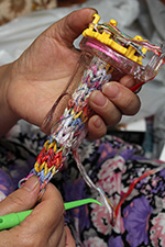 my mother and sister were out shopping and taking the dog for a walk. earlier my mother asked if i wanted to come, but i said they would probably be out for a long time. sure enough, they didn't come back until 3 hours later. my mother bought a clover wonder knitter, after watching a youtube video of an english woman using one to create all sorts of pretty scarves. it's the sort of gadget that a crafty kid might use, and the body of the knitter is composed of translucent glitter plastic, which indicates the intended target audience.