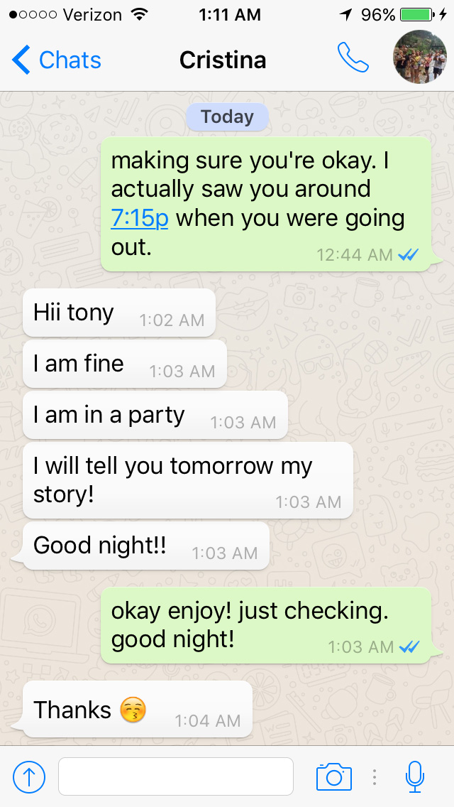 cristina came home in the early evening. i hadn't seen her since sunday night (today being tuesday). she told me about her commute and her workplace. she was annoyed that they had a dress code (because she occasionally shadows other doctors in seeing patients) since she only bought casual clothes (jeans) and would need to buy some new clothes at some point. she also filled me in on what happened last night. she'd actually returned home after i got back (she was out getting some wine), but i was taking a shower so she left again afterwards. she went to go meet a guy she knew from her couch surfing network. he lived in the south end and travels a lot (apparently he's a writer of some sort) and invited her to his rooftop home overlooking boston for a barbecue and hot tub experience. unfortunately cristina ended up getting lost as google map took her on a destination 2 hours outside of the city. she finally did make it back to boston, her friend had to come pick her up. the "party" ended up being just him with another guy (highly suspicious) but cristina ended up staying there for a little bit.
