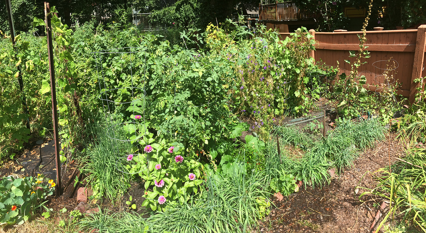 it was crowded in the garden, as joel was there, as well as the woman who has the plot in front of mine. i don't like her very much (i never remember her name and i don't even recognize her when i do see her), she doesn't make very use of her garden even though it's one of the best plots there is. most of the things she grows are perennials, and she neglected them for weeks on end.