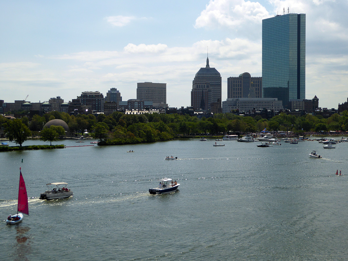 the easier way to return was by charles river bike path over the hatch shell bridge, but that was were the flugtag was still ongoing, and i didn't want to run into the sea of people again. instead we returned via longfellow, on the other side, where was only a pedestrian walkway, but far fewer people. we made it over by going over beacon hill, which was quite the uphill slog, but cristina managed to keep up.