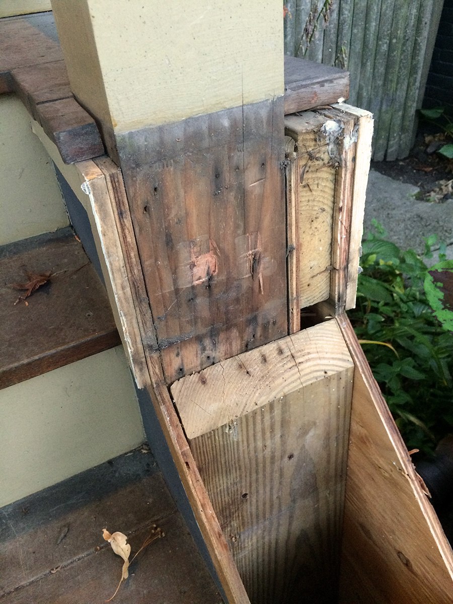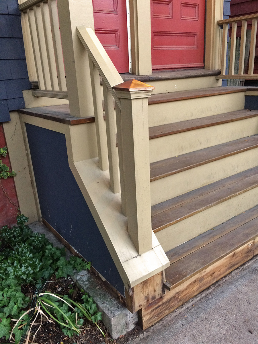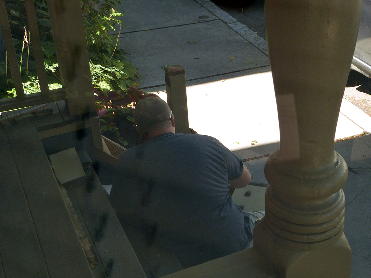 after dinner i returned home. for the first time, the weather felt a little brisk with temperature in the 70's. could be time to bust out the longsleeves for those evening rides. when i got back i took some photos of the front porch, was in a state of disrepair. i figured john will come back tomorrow to finish the job.