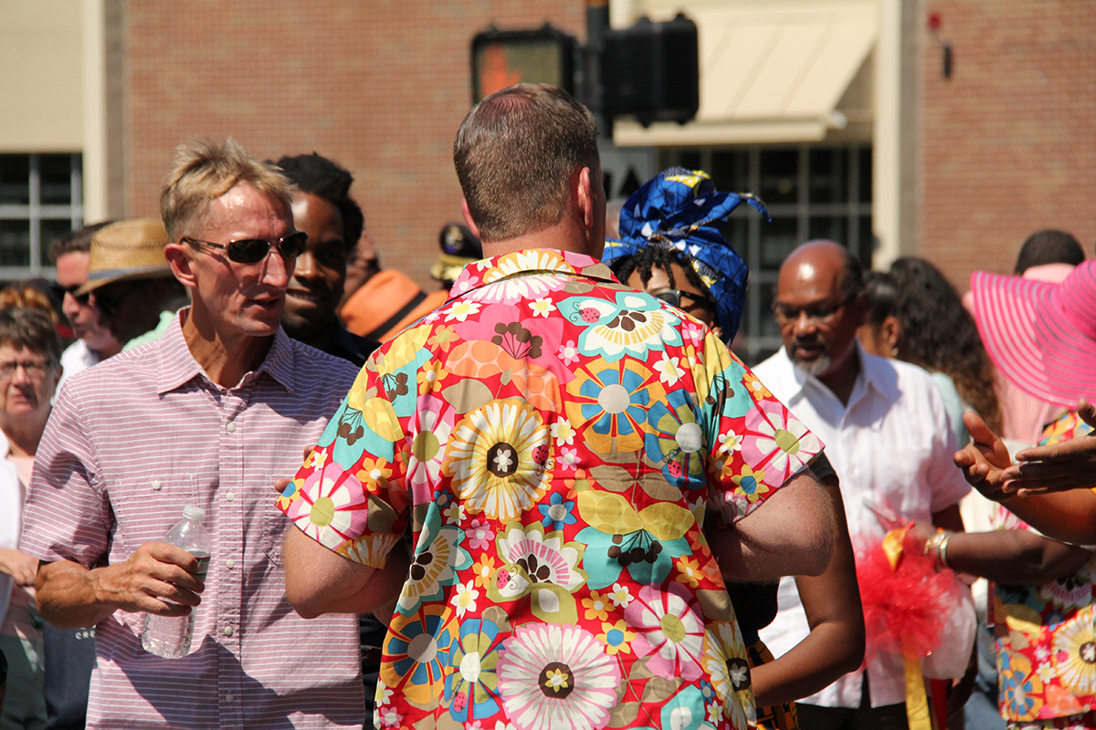 the beginning of the parade is the most boring, just your slew of local politicians and interest groups. i saw the mayor and the police commissioner. will boston ever have a cool mayor? although menino was much beloved by the end of his career, he wasn't exactly what you call cool. his successor marty walsh put on a garish hawaiian shirt before changing it last minute to something much more muted. a few lucky constituents got their photo taken with the mayor while he was still in full-on hawaiian mode. there was also massachusetts senator (2nd suffolk district) sonia chang-diaz, who's a common sight at these parades, up for re-election this year.