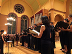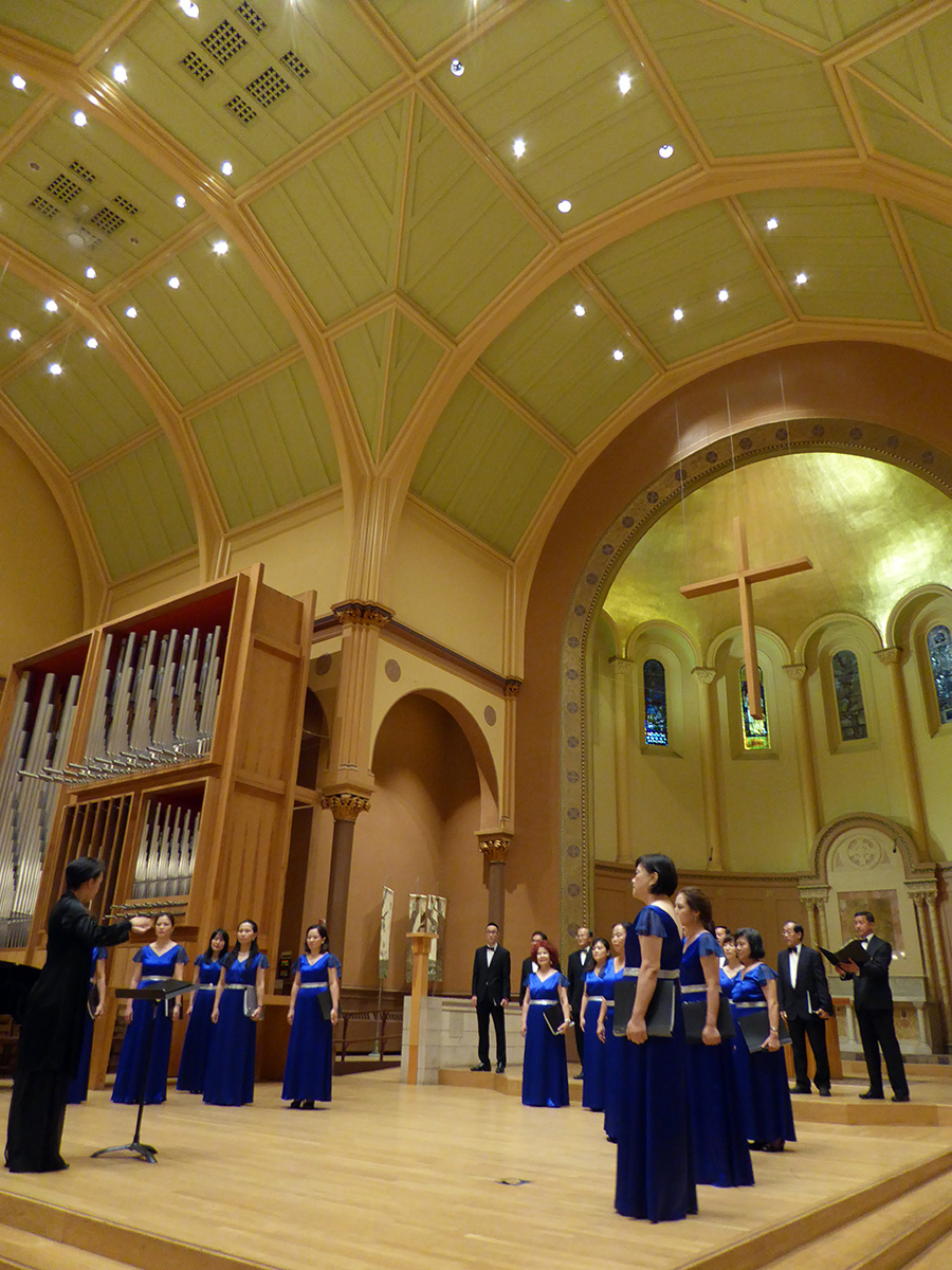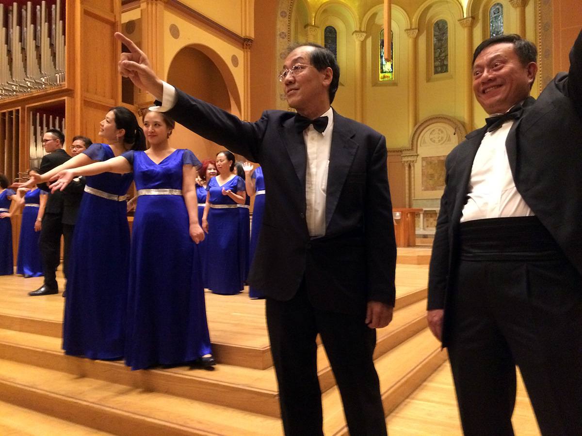 when the voice of taiwan choir group entered the stage, you could tell right away they were a more professional singing troupe: the men wore tuxedos while the women had matching deep blue dresses. these were the singers that'd be staging the united nations protest come this weekend. their set list contained 9 songs, including some in taiwanese and possibly hakka as well.