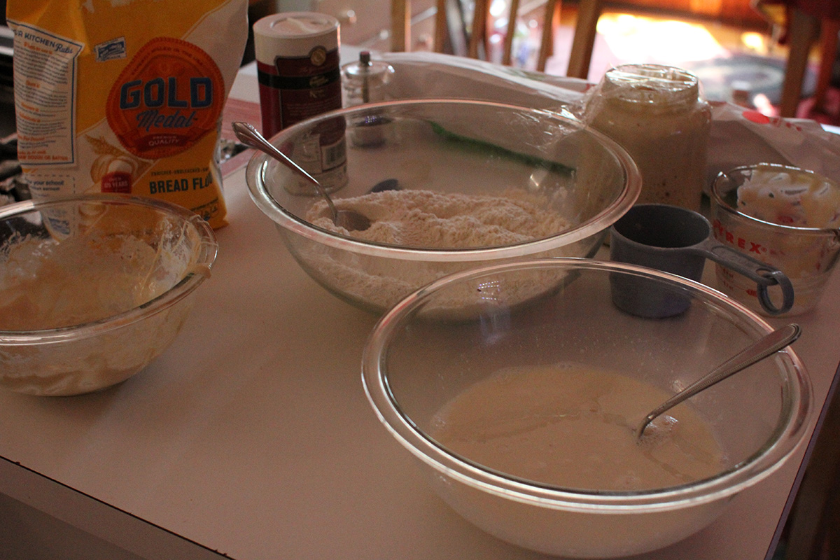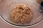 finally after a week of cultivating my sourdough starter, i'm finally making the bread. i followed a new york times no-knead sourdough recipe: 3-1/2 cup of unbleached bread flour, 1 tsp kosher salt, 3/4 cup of sourdough starter, 1-1/4 cup of room temperature water. the recipe actually asked for lukewarm, but i felt lazy and wasn't in the mood to heat up the water in the microwave. the water was used to turn the gooey sourdough starter into a slurry before mixing it with the flour and salt. i used my starter from the pyrex bowl, which didn't seem to have as many bubbles as the starter in the jar, but when i went to scoop it out, it was very fluffy and light, inflated by all the yeast activity. as for the leftover starter, i moved it so it too can live in a jar, combined with a cup of flour and 1/2 cup of water to feed.