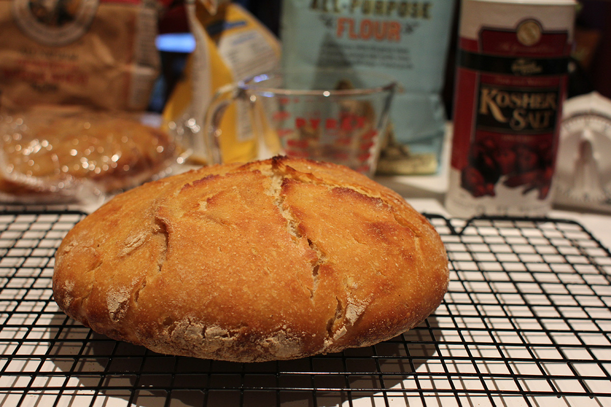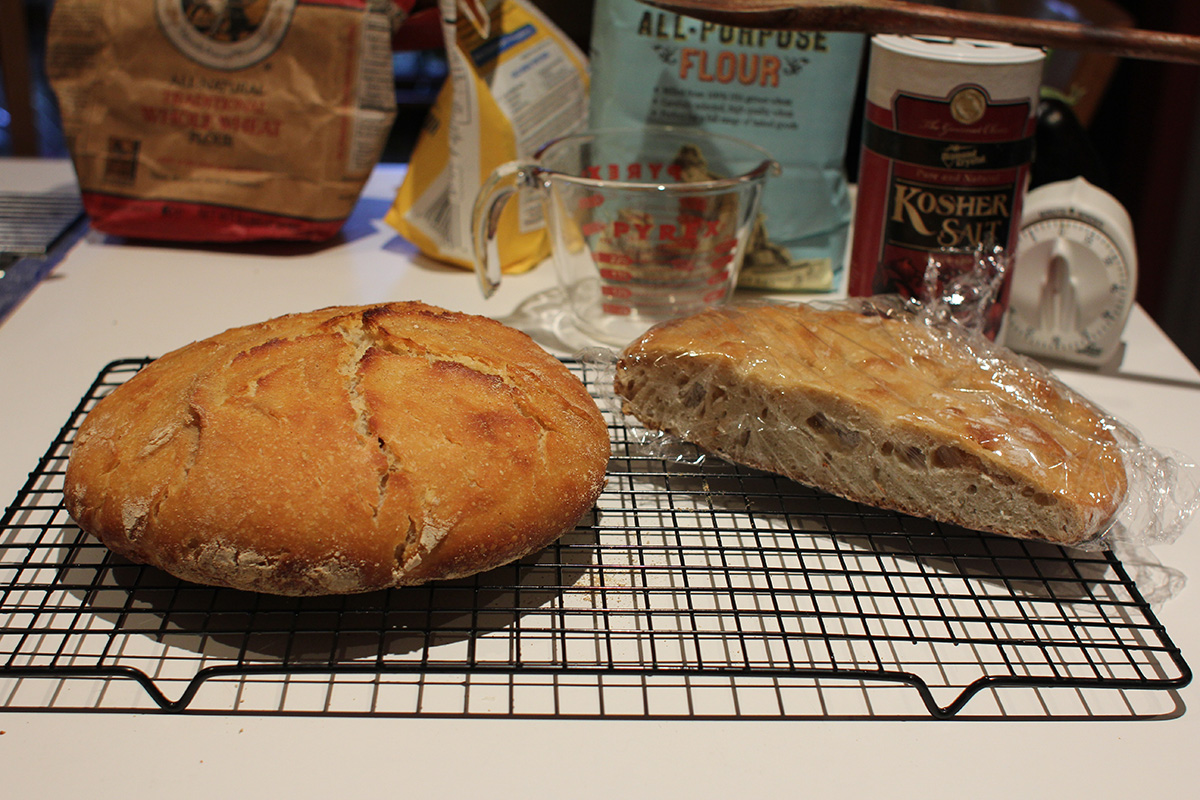 12:30p was when i began the 2nd phase of sourdough 2.0. it'd been 22 hours since i left the dough alone, but i could already tell that this would be not a good bread because the dough had barely risen, just sort of flattened out in the pyrex bowl. was the dough still too wet? that's the only thing i can think of, but by this point it was too late. nothing left to do but to bake the dough and see.