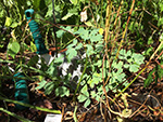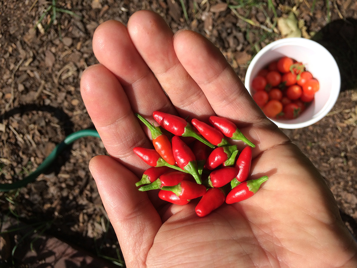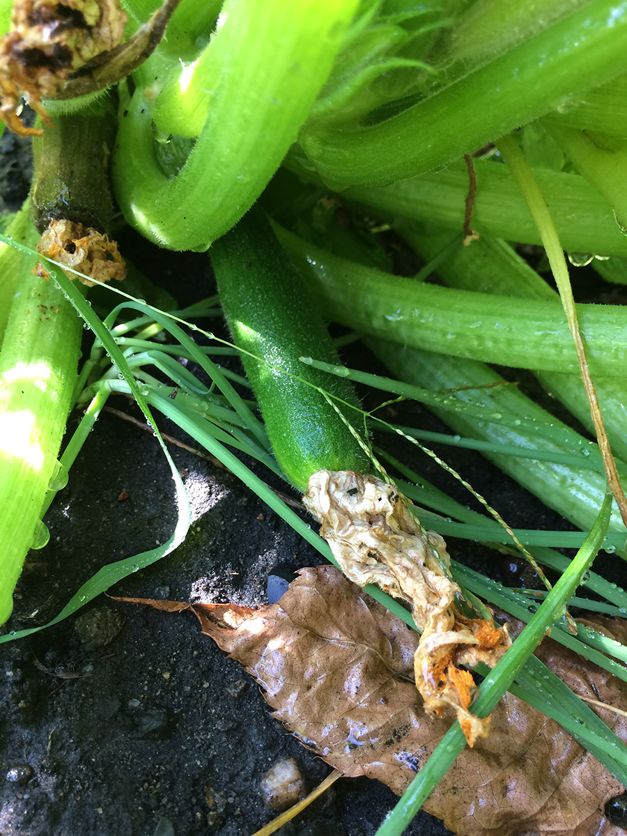 i collected a container of cherry tomatoes, some thai chili peppers, and a few cucamelons. also a pair of eggplants. i was hoping to get at least one zucchini, but when i checked my squash plant, i saw one of the fruits had atrophied. and now with the temperature getting colder at nights and the autumn sunlight lower on the horizon, i'm afraid conditions aren't great for getting any zucchinis this year. this was a bonus plant anyway, a wild squash that emerged on its own, the last hurrah of plot 34.