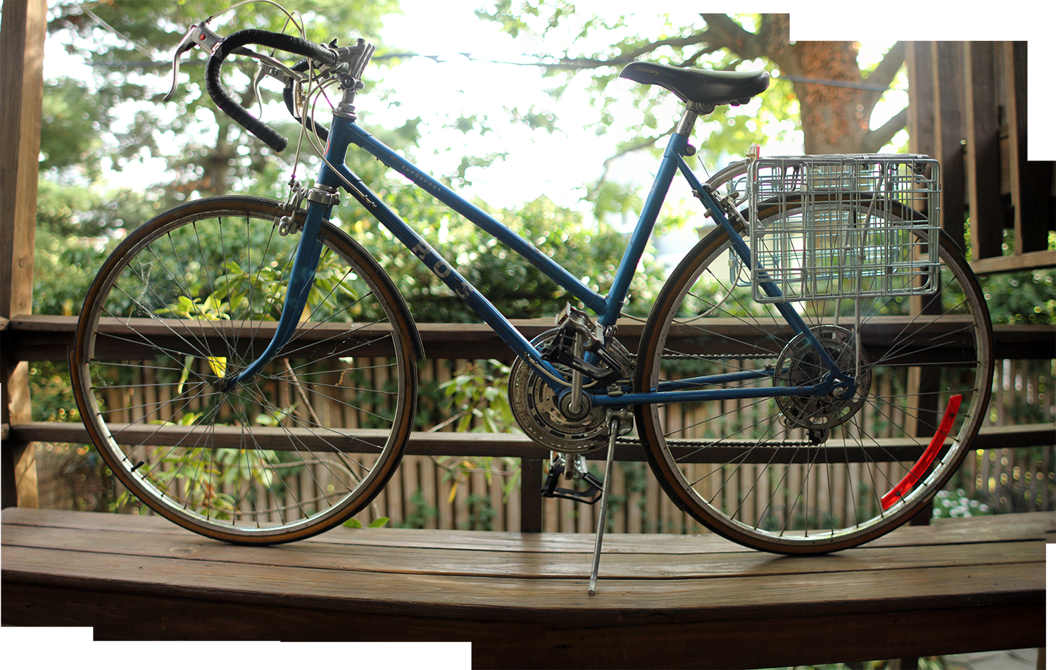 back in my early days of renewed biking interest, i'd acquired the ross eurosport (august 2011). that was the very first bike i ever bought on craig's list, i think i only spent $20 on it. i thought it was a great bike and rode it as much as i could, before i got my hands on other bikes and the ross sort of got abandoned in the basement for several reasons: i was never completely comfortable with the dropdown handlebars (made navigation a bit trickier compared to traditional wide-set handlebars) and the steel frame made it a heavy bike. but before relegating the ross to the bicycle dustheap, i'd done some customization: toeclips on the pedals and a pair of collapsible rear baskets (one of them lost when it fell off the bike because i was only used plastic zip ties at the time).