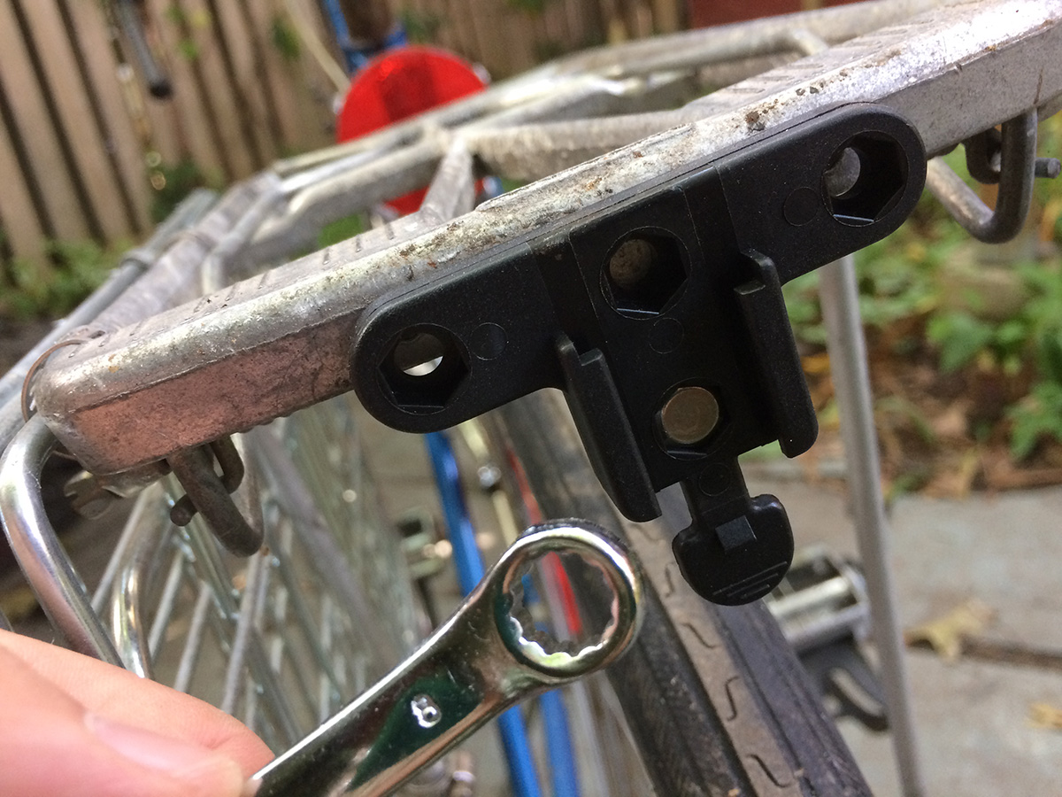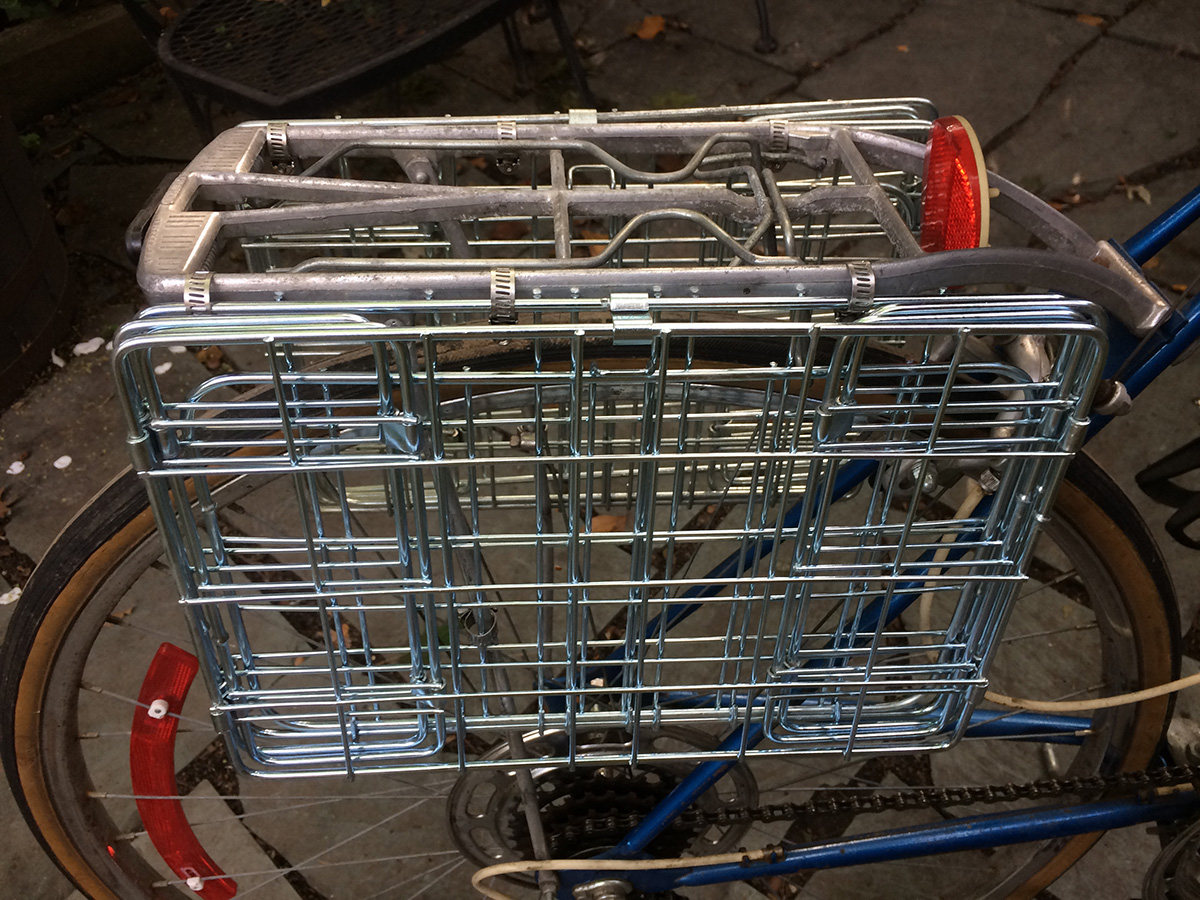 once the new chain was up, i attached a spare rear light bracket i bought a long time ago but never got around to installing. it just required an 8mm combination wrench to tighten the nut. finally, i attached a second collapsible rear basket to replace the one that'd fallen off and gone missing. the ones that i had was a pair, and i didn't want to break apart the set, but it was a waste not using it and having them just sit in my closet. if i ever need to install a pair again, i'll just buy another one online. and actually, i also have a set of black collapsible baskets as well, so there really wasn't any good excuse to not install it. i ended up using 4 small stainless steel hose clamps to attach the basket (3 on top, 1 on the bottom). they look good, maybe the ross can be my fast grocery bike for those times when i don't feel like riding the slow and heavy trek utility bike.