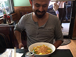 i woke up around 9:20am thinking kiki was in the bathroom because the door was closed. turns out he was just in his bedroom, with the door slightly open. while i was using the bathroom he ate breakfast, then after i finished he took a shower. we left by around 10am. we got as far as a block before we noticed there was something wrong with his bike: the wheel was rubbing up against the fender, and no amount of adjusting could fix it. so we went back to the house and exchanged the red schwinn with the ross eurosport i'd fixed up yesterday.