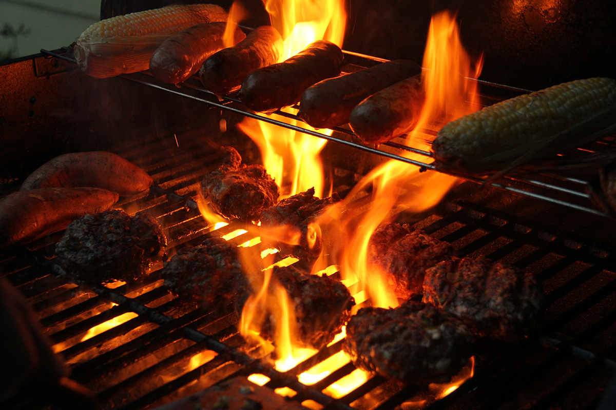 we cooked a few barbecue items for dinner, including some blue cheese burgers and italian sausages. the burgers were good, a lot more flavorful than last night (where i probably used too much beef and not enough blue cheese). the best however were the sausages, cooked to perfection, juice on the inside, crispy on the outside, as if they were deep-fried.