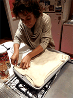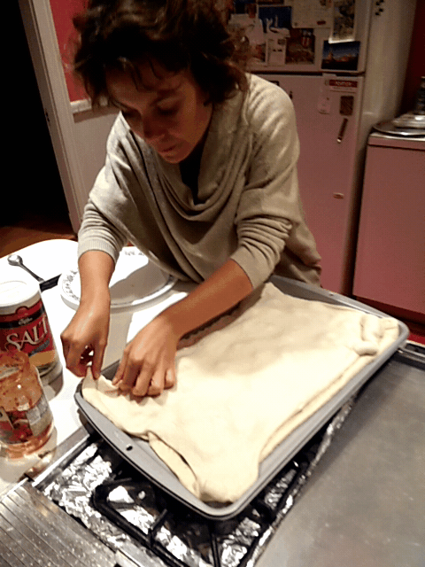 cristina made some empanadas in the evening; not for dinner, but rather as appetizers for the closing presentation she'll give at the center tomorrow. she actually went to market basket and bought some vacuum-sealed pillsbury pizza dough sheets. i watched her cook, partly out of curiosity, partly to keep on a eye on her from creating too big of a mess.