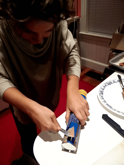 the most exciting part was opening up the 4 rolls she bought; i've never opened one up myself, as we used a spoon to pop the tubes. empanadas traditionally have a meat filling, but because cristina is vegetarian, she wanted to stick to strictly vegetable ingredients. she made two batches, one with blue cheese + tomatoes + zucchini, the other with eggplant + tomato sauce + oaxaca cheese. A for effort, but she never made empanadas before, and was trying out an improvised recipe on unwitting coworkers.