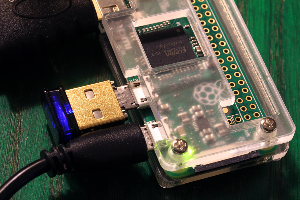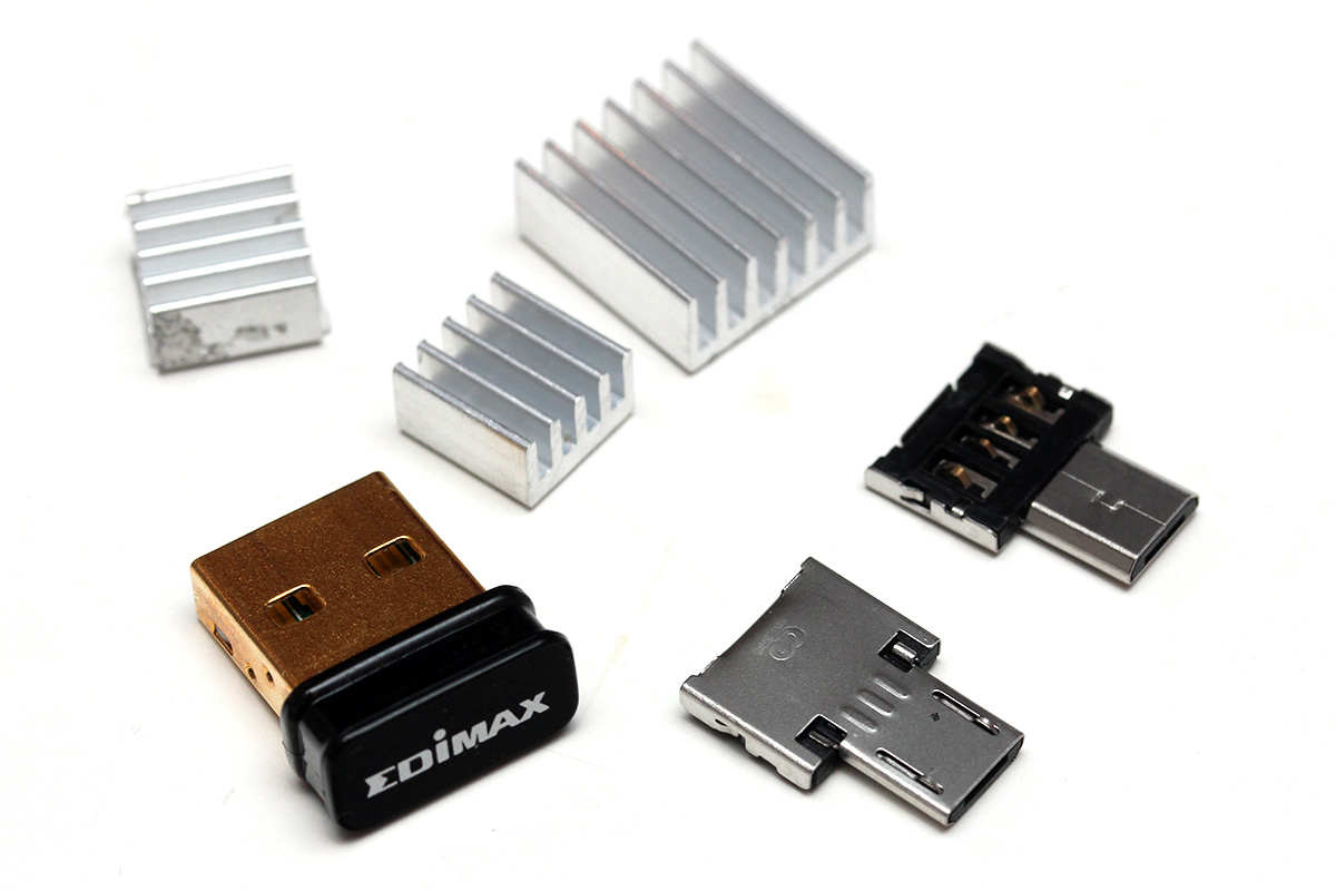 2 packages arrived for me in the mail: a set of miniature aluminum heat sinks for the raspberry pi (99¢, purchased 10/5, arrived from hong kong) and a pair of micro USB OTG adapters (99¢, purchased 9/30, from hong kong as well). i tried out the micro OTB adapter, swapping out the OTG cable. it worked flawlessly, fit on the pi zero just right, with just enough clearance from the nearby USB power cable. one thing i did notice however is now the pi zero sips just a little more power than before. previously, with the OTG cable, it would sit at 0.9 watts. now with the OTG adapter, it sits at 1.0 watts, sometimes a little higher.