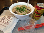 by that point i was pretty hungry. i ordered a bowl of lamb paomo ($8.75), a lamb roujiamo sandwich (chinese arepa, $4), and a can of apple sidra drink (which is actually taiwanese, $1.75). for this to be a truly authentic shannxi eating experience, they should really have some sort of orange-flavor soda. next time, bring your own! i grabbed a table all to myself, but an indian father with two daughters came in and asked if his daughters could sit at my table because the table they got was close to the door and was cold. i nodded okay, didn't say anything. later when another table opened up, they moved.