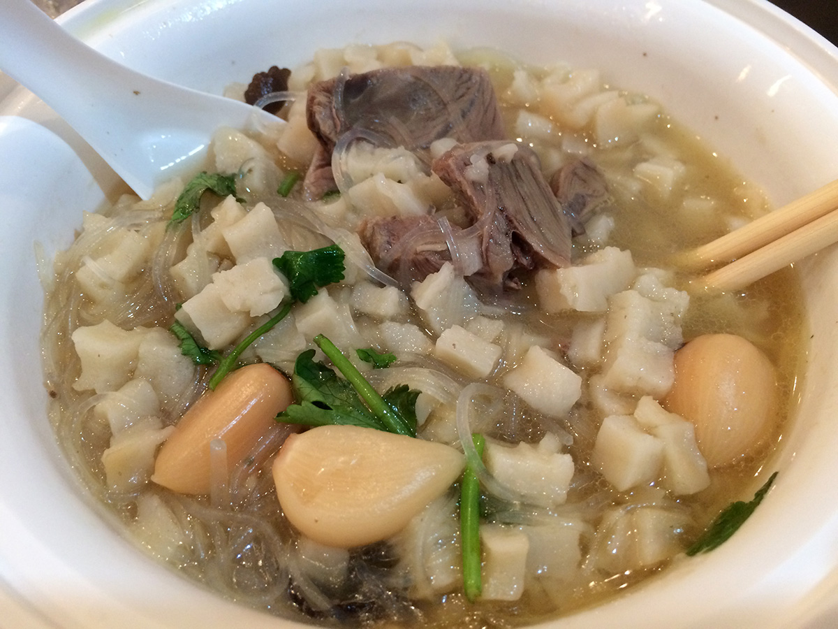 a quartet of young men all dressed in black came into the restaurant and ordered. from their accent i could tell they were from northern china. they didn't hesitate in speaking mandarin to the cashier, just assumed she'd be able to understand him (i spoke english when i ordered). from their clothes i could see they were rich, but a taste that was distinctively garish mainland chinese, like rhinestones boots. on the back wall behind the cashier was a flatscreen monitor replaying tv stories about this restaurant. apparently it was reviewed by the likes of anthony bourdain and andrew zimmern.