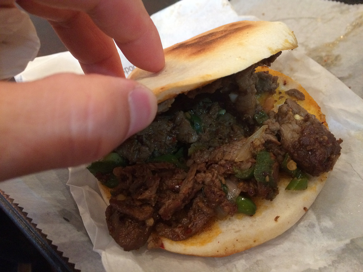 the roujiamo sandwich was a different story. it wasn't good at all (but neither were the roujiamo sandwiches i had in xi'an), oily stir-fried lamb, and the bread a little hard and dry and hurt my mouth eating it.