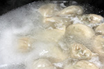 for dinner i boiled the plate of frozen chinese dumplings (16) my parents' delivered yesterday. dumplings nothing without a good dipping sauce, which i created with chopped garlic, soy sauce, vietnamese hot sauce, and a bit of balsamic vinegar. it was a night of sports, two basketball games on ESPN (streamed on the chromecast) and game 3 of the world series on local FOX 25 (cleveland at chicago).